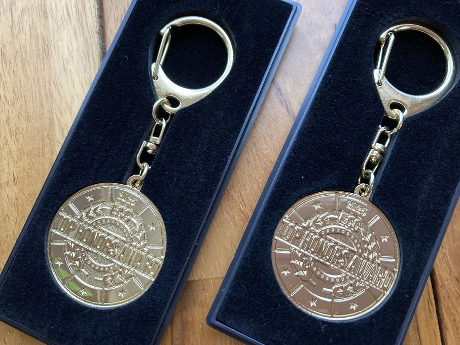 ECCジュニアでは毎年1回検定試験を全生徒に実施しています(2~3歳児とシニアのクラスを除く)。教室での1次試験と、ネイティブスピーカーの先生による面接の2次試験があります。当教室のジュニアクラスの生徒全3人ともに、トップクラスの「特A」評価を取り、うち2人は1次2次とも全問正解で金メダルを受賞しました。生徒さん全員のがんばりの成果であるとともに、講師の指導の成果でもあると、誇らしく思っています。